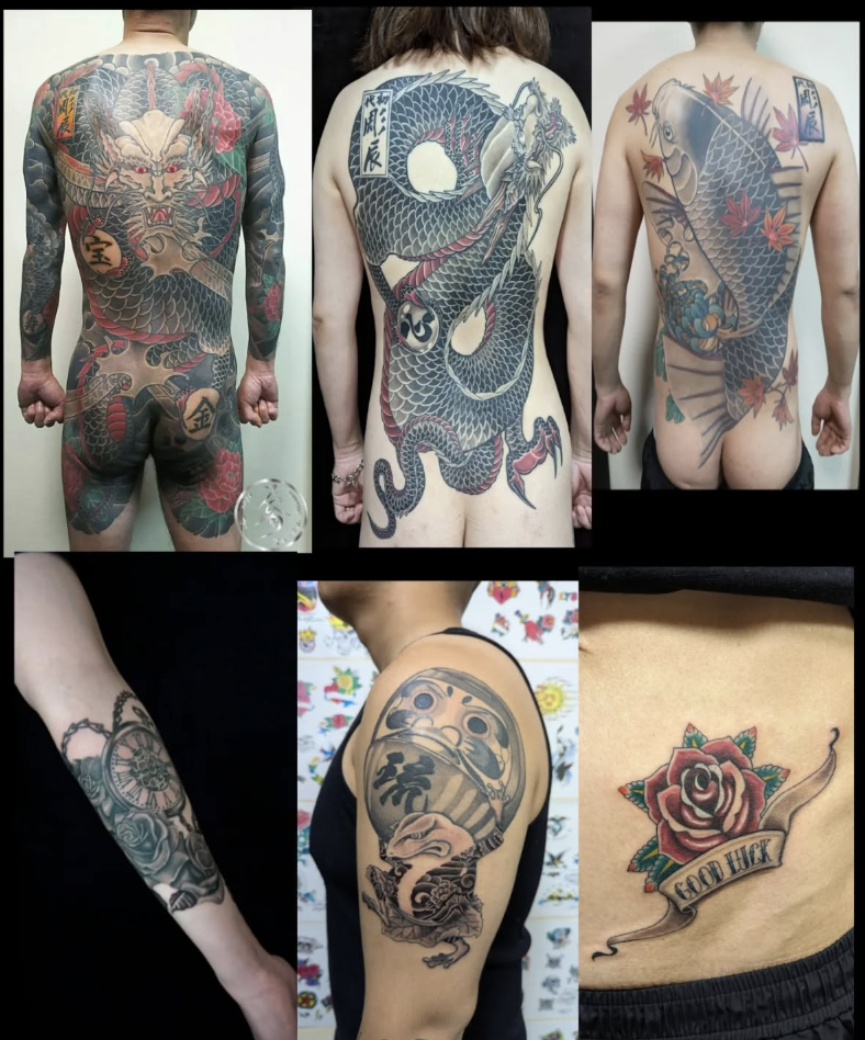 | 得意デザイン | 和彫り(鯉、般若、龍)、ブラック(フクロウ、マリア) |